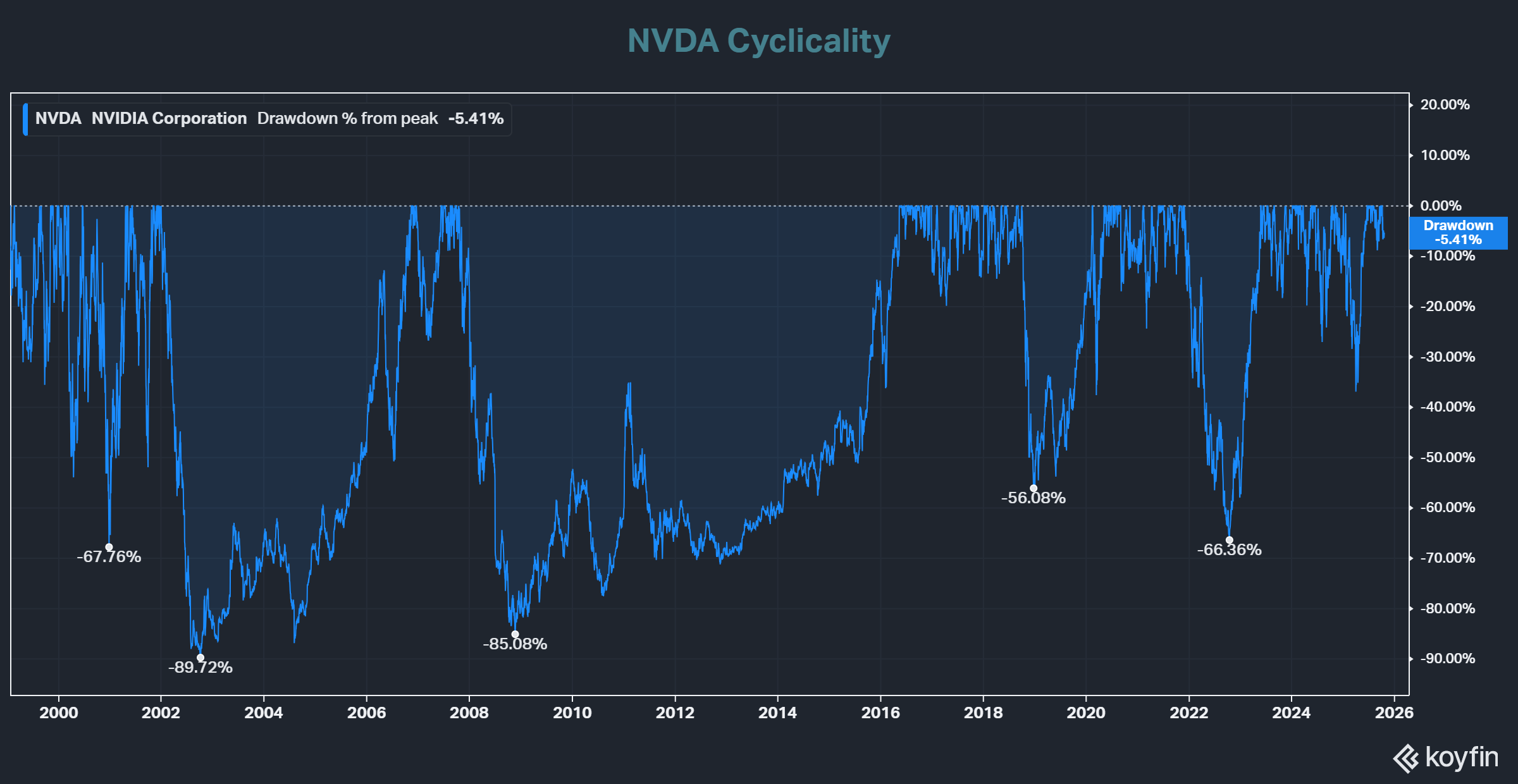 The trouble with bubbles is timing them. In some sense, “as long as the music is playing, you’ve got to get up and dance”. If history is any guide, the road to the top (if it’s still ahead of us) will be plagued with volatility – the Nasdaq’s dot-com era 366% run from 1998 to the peak in March 2000 came with eight peak-to-trough corrections of 10% or more, averaging 13.5%. Part of the difficulty is investors will not be able to appropriately judge today’s investments for several years, given the delay in building data centers, training models and preparing them for public release. If Sam Altman continues to convince people of his completely insane 250GW dream – well, then we may only just be getting started.