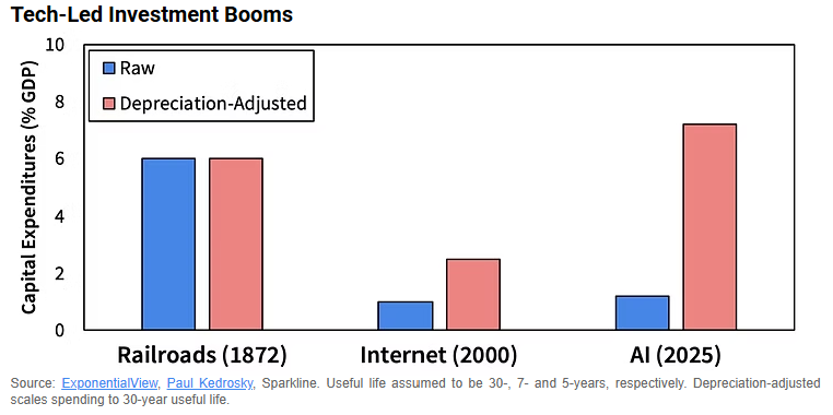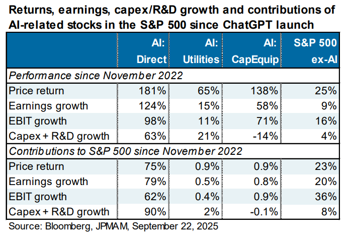 - The U.S. equity markets, and by extension the U.S. economy, are now heavily dependent on AI delivering a real return on investment (ROI).